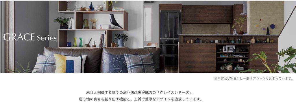 天然木のような美しい木目調と、高い収納力を誇る「グレイスキッチン」「グレイスドレッサー(洗面台)」「グレイスバス(浴室)」が追加費用なしで選択できます。