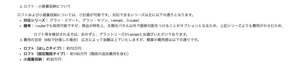 - 費用感(ロフト・小屋裏収納のオプション価格)